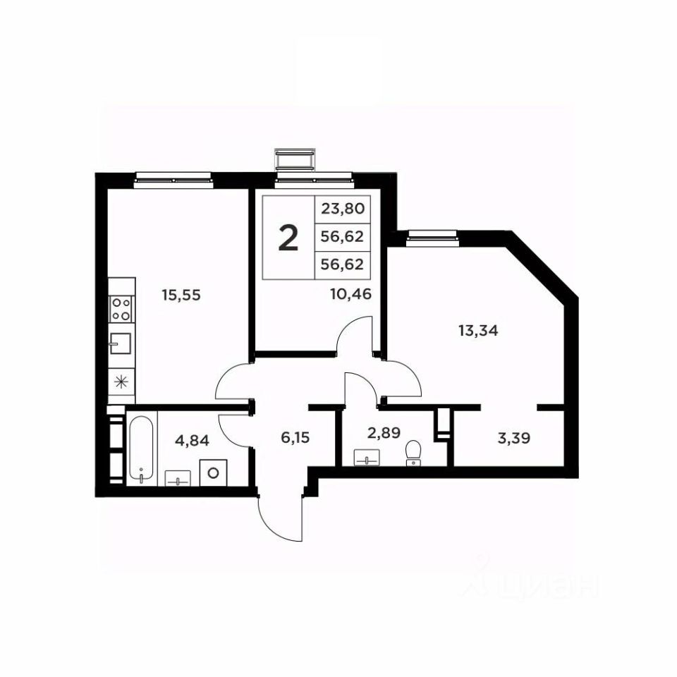 Общая площадь56,62 м2