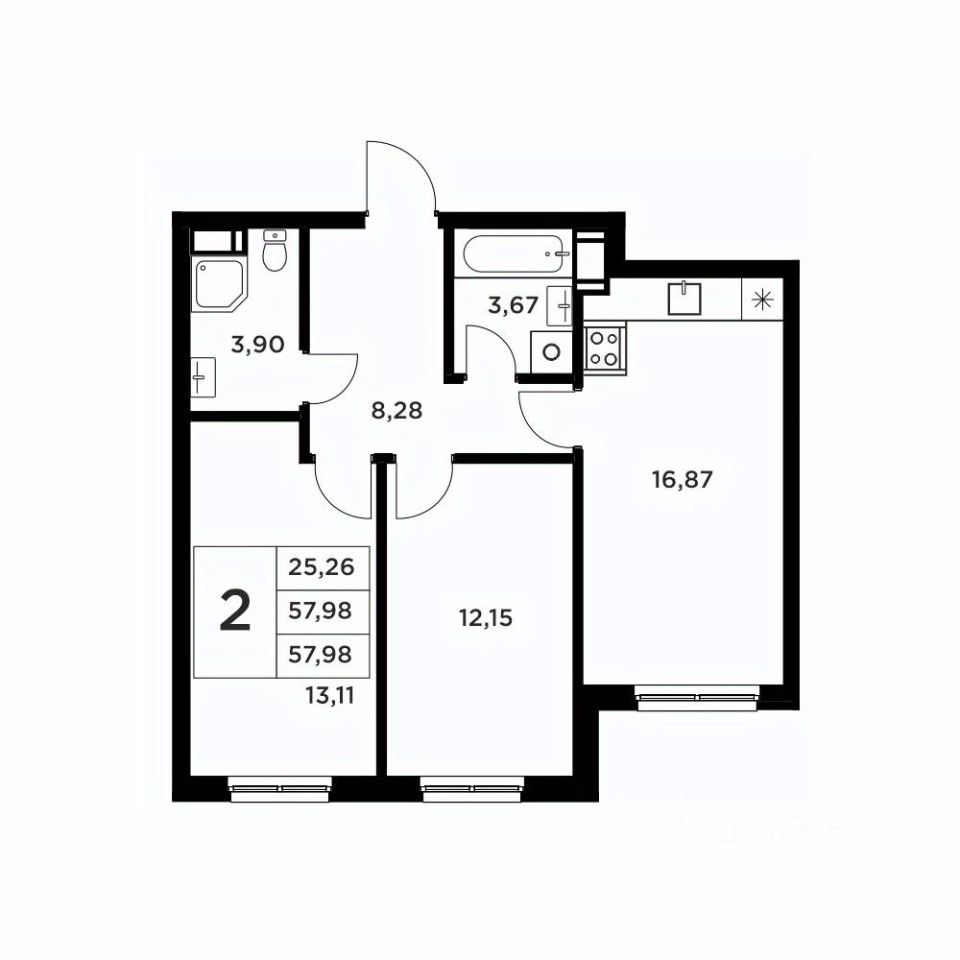Общая площадь57,98 м2