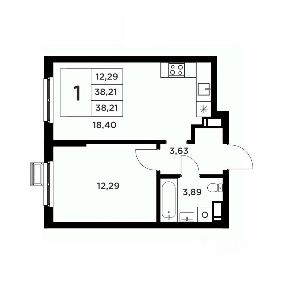 Общая площадь38,21 м2