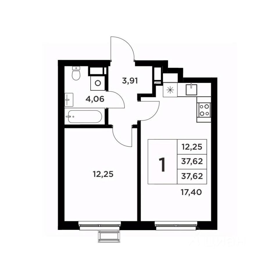 Общая площадь37,62 м2