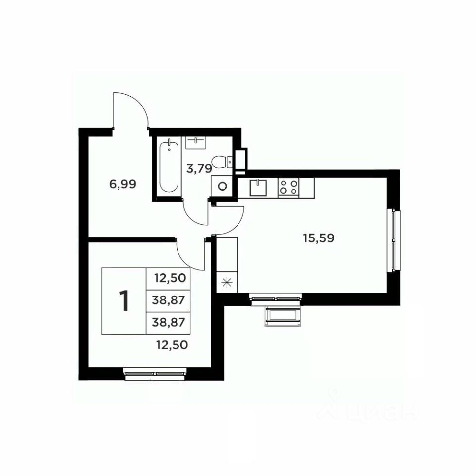 Общая площадь38,87 м2