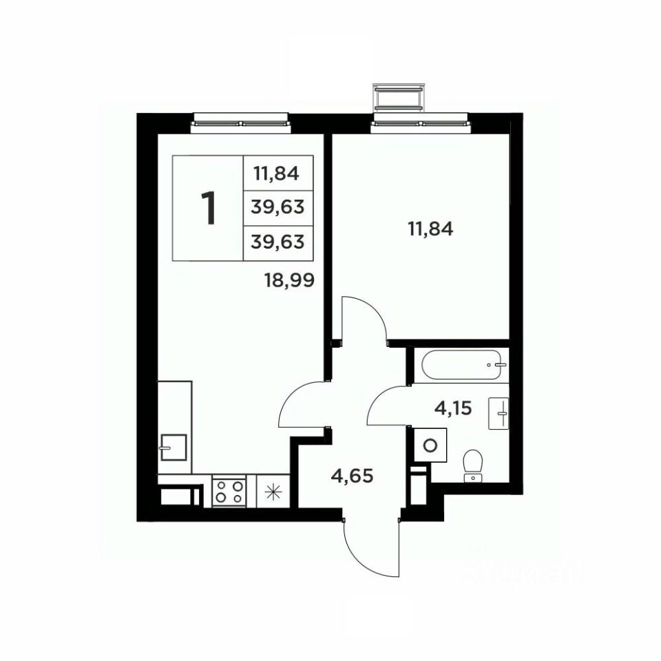 Общая площадь39,63 м2