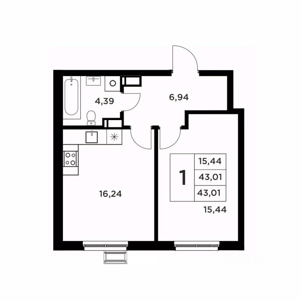 Общая площадь43,01 м2