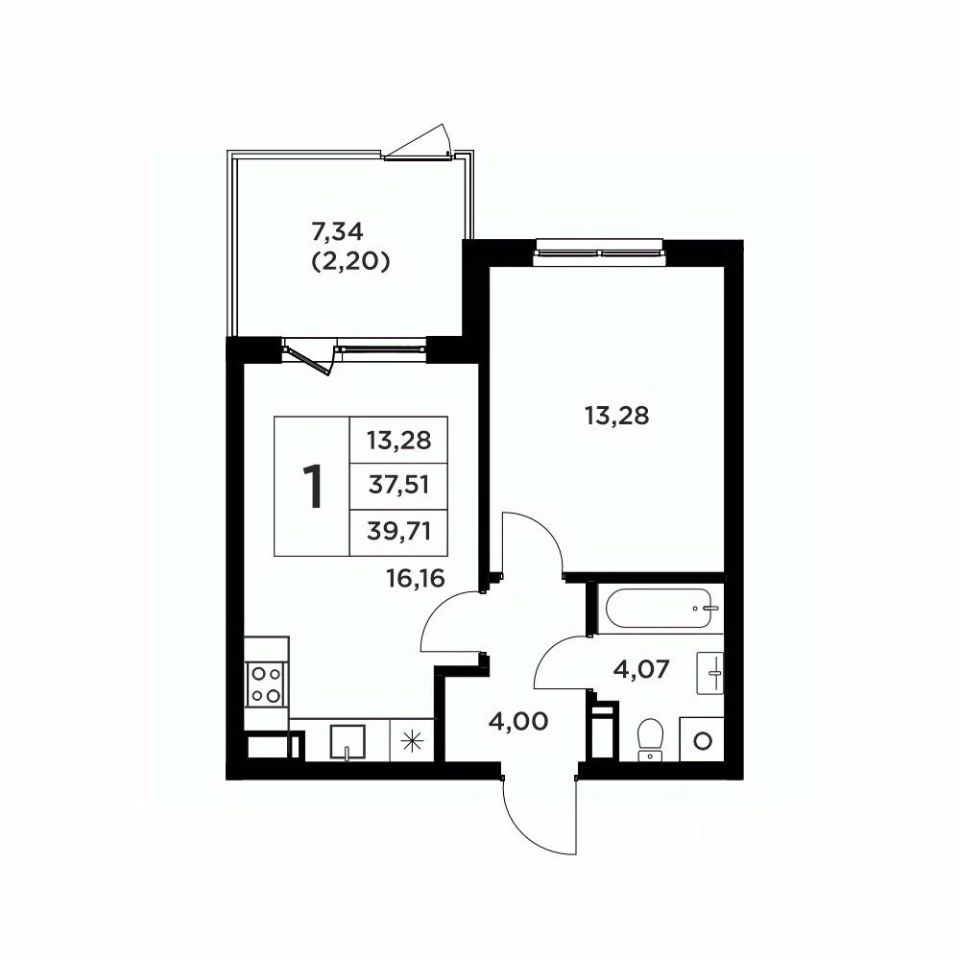 Жилая площадь13,3 м2