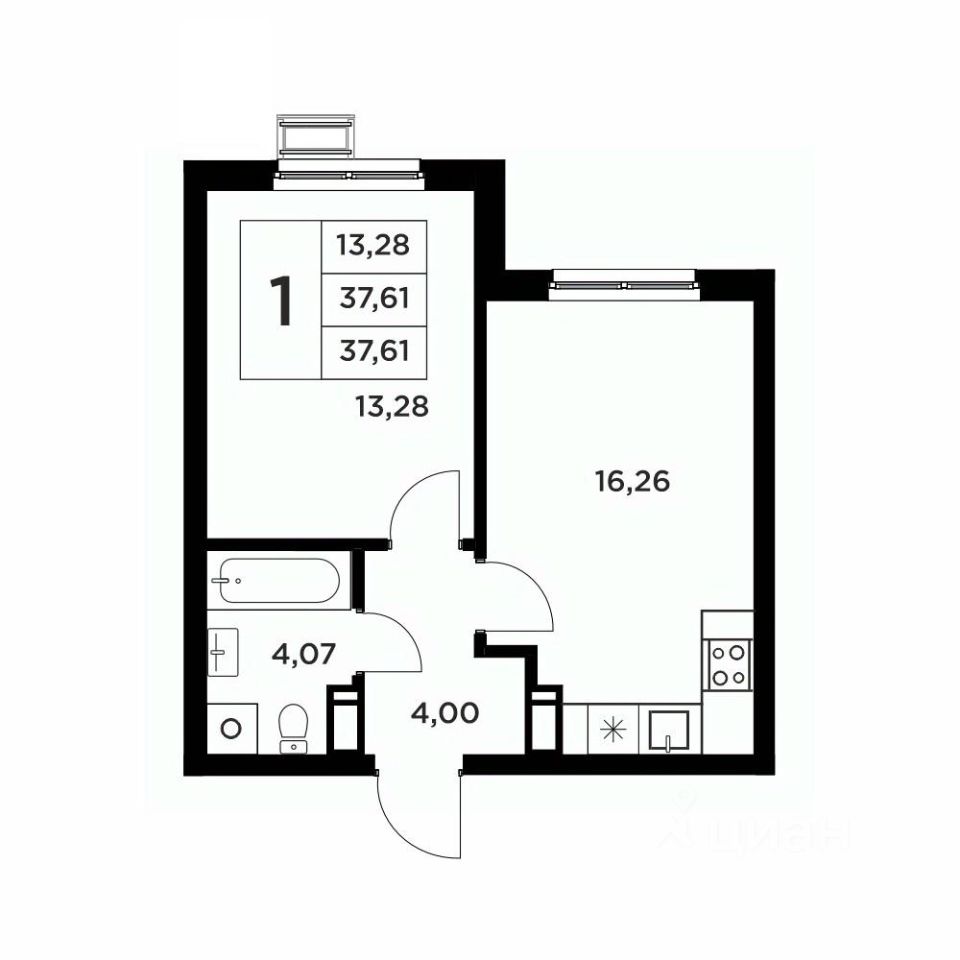 Общая площадь37,61 м2