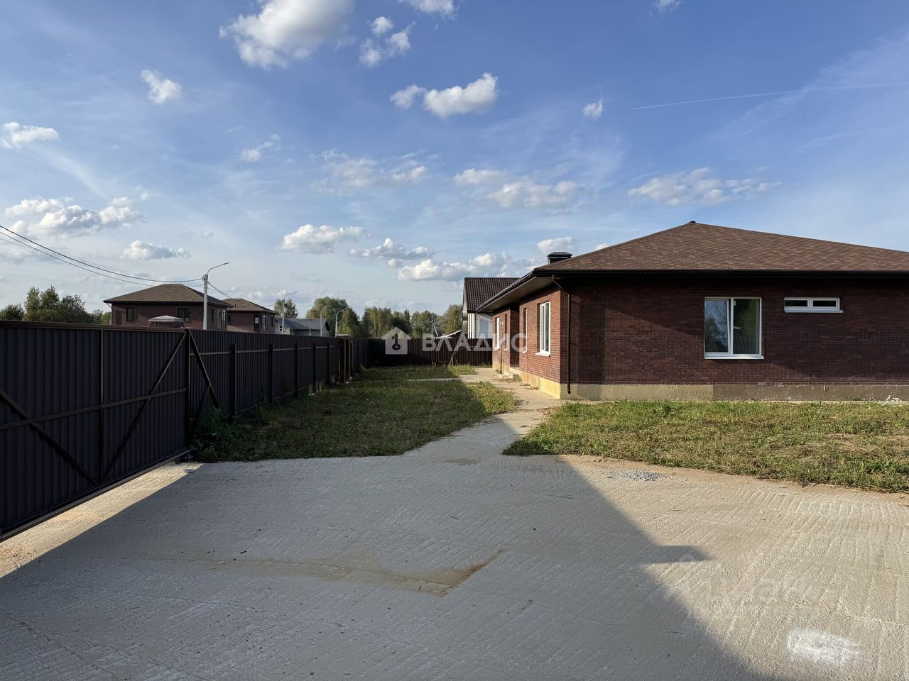 18,08 соток. Выровнен. Заезд для автомобиля, парковочное место, тропинка и отмостка дома забетонированы. Забор - металлический профлист по всему периметру.