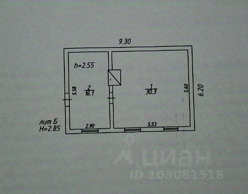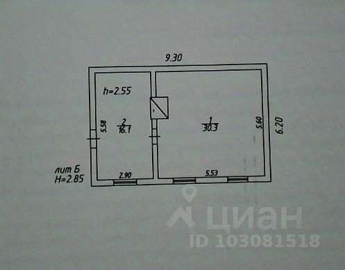 1 этаж: Большая гостиная (30,3 кв.м) и просторная кухня-прихожая (16,1 кв.м). 2 этаж: Изолированная комната-спальня (40 кв.м). Высота потолков: 2,7 м.