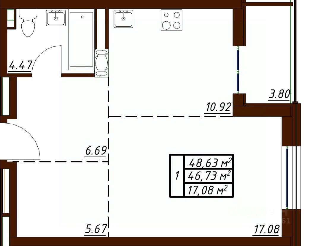 Общая площадь48,63 м2