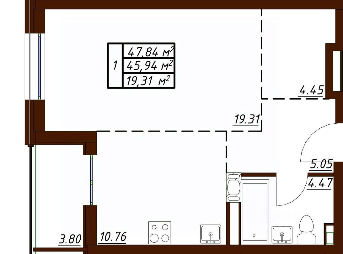 Общая площадь47,84 м2