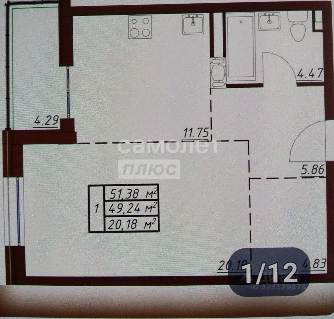 Арт. 107414920 Продаем квартиру общей площадью 51.4 м кв, на 5-м этаже в ЖК ''Пушкин'',площадь кухни 11.8 м кв ,планировка на усмотрение хозяина .