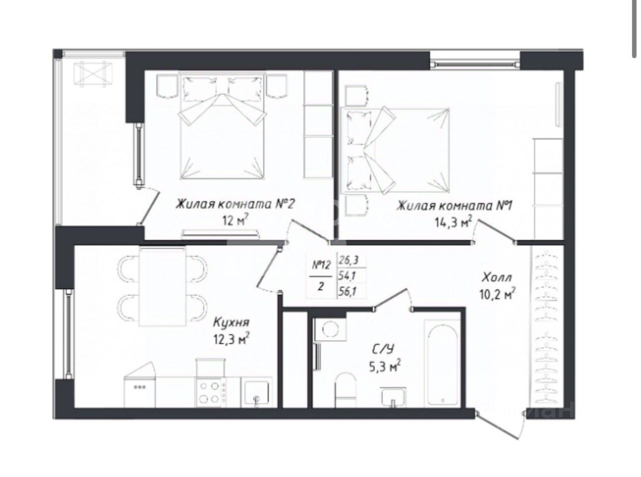 Арт. 121115837 В продаже видовая просторная двухкомнатная квартира в доме по ул. Комфортная 18.