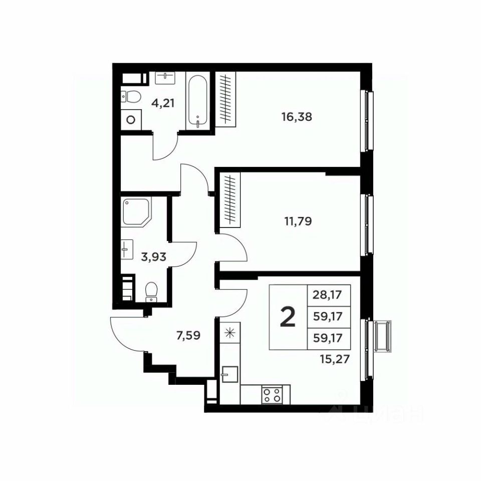 Общая площадь59,17 м2