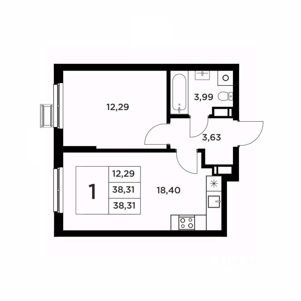 Общая площадь38,31 м2