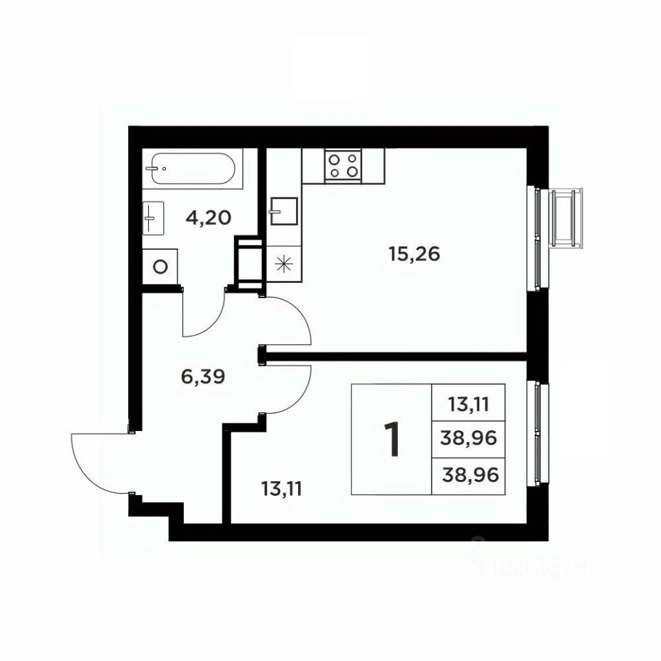 Общая площадь38,96 м2