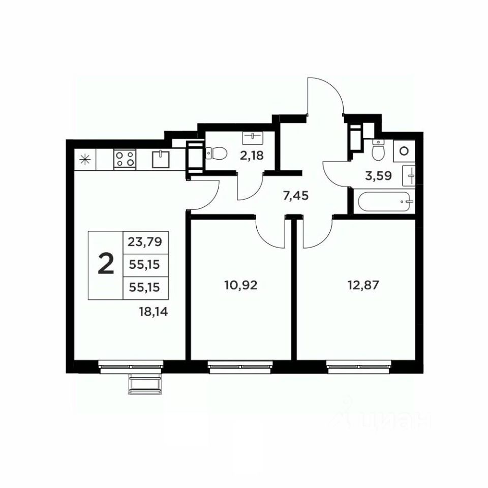 Общая площадь55,15 м2