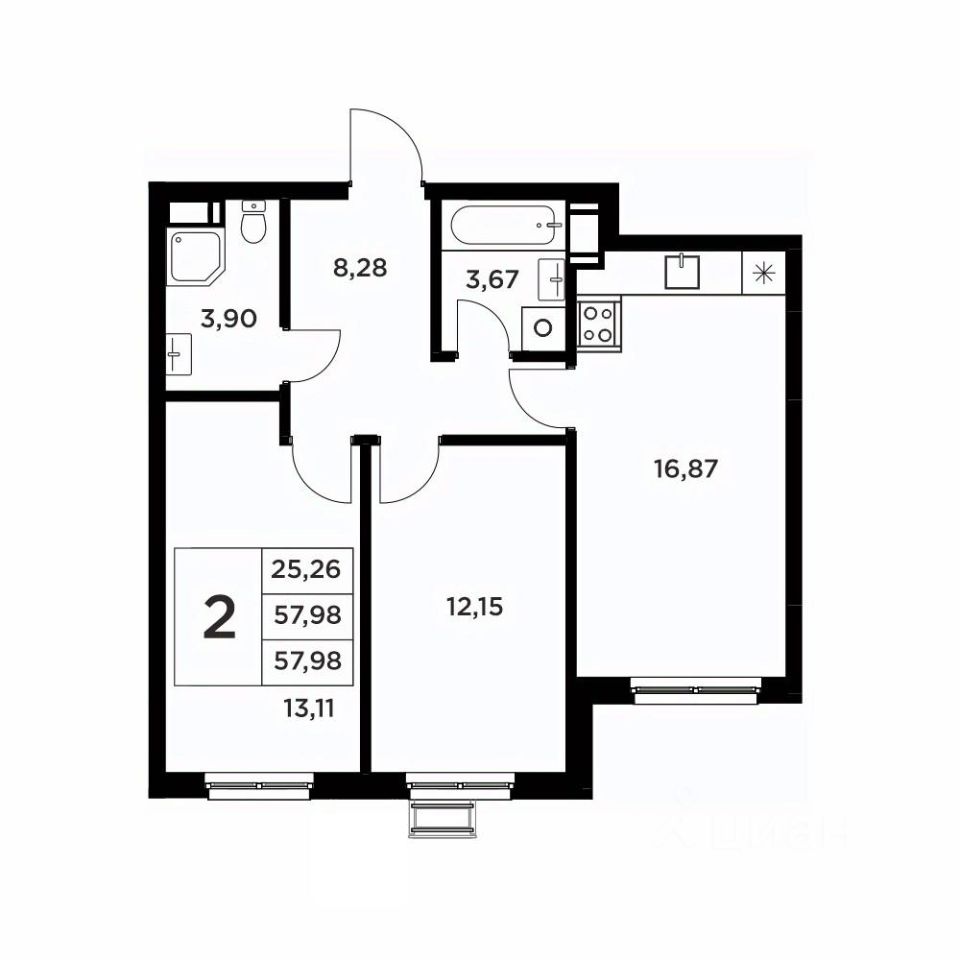 Общая площадь57,98 м2