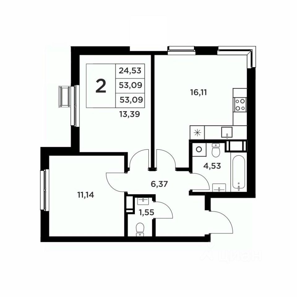 Общая площадь53,09 м2