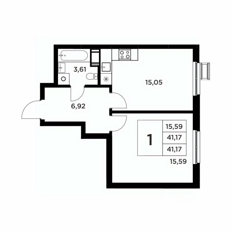 Общая площадь41,17 м2