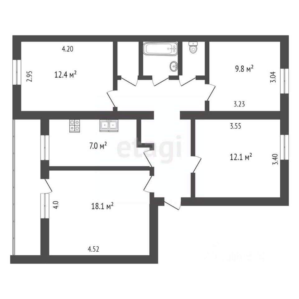 Продается четырехкомнатная квартира, расположенная на втором этаже пятиэтажного кирпичного дома 1983 г. постройки, район Ольговки. Комнаты изолированные, площадью 18,1, 12,4, 12,1, 9,8 м2. Кухня 7 м2 с выходом на большую лоджию. Окна ПВХ, санузел раздельный, есть кладовка. Горячая, холодная вода, на все установлены счетчики. Квартира в хорошем жилом состоянии. Тихий уютный двор, школы, детские сады, магазины - все в шаговой доступности. Хорошее транспортное сообщение, рядом объездная дорога. Почему нужно работать с Федеральной компанией ''Этажи''? - Юридическое сопровождение сделки и гарантия финансовой защиты - Уникальные условия на услуги страхования объекта - Самые низкие ипотечные ставки - Новостройка без комиссии - Программа лояльности ''Этажи Бонус'' для клиентов компании ''Этажи'' от партнеров . Код пользователя: 6787 Номер в базе: 3003792