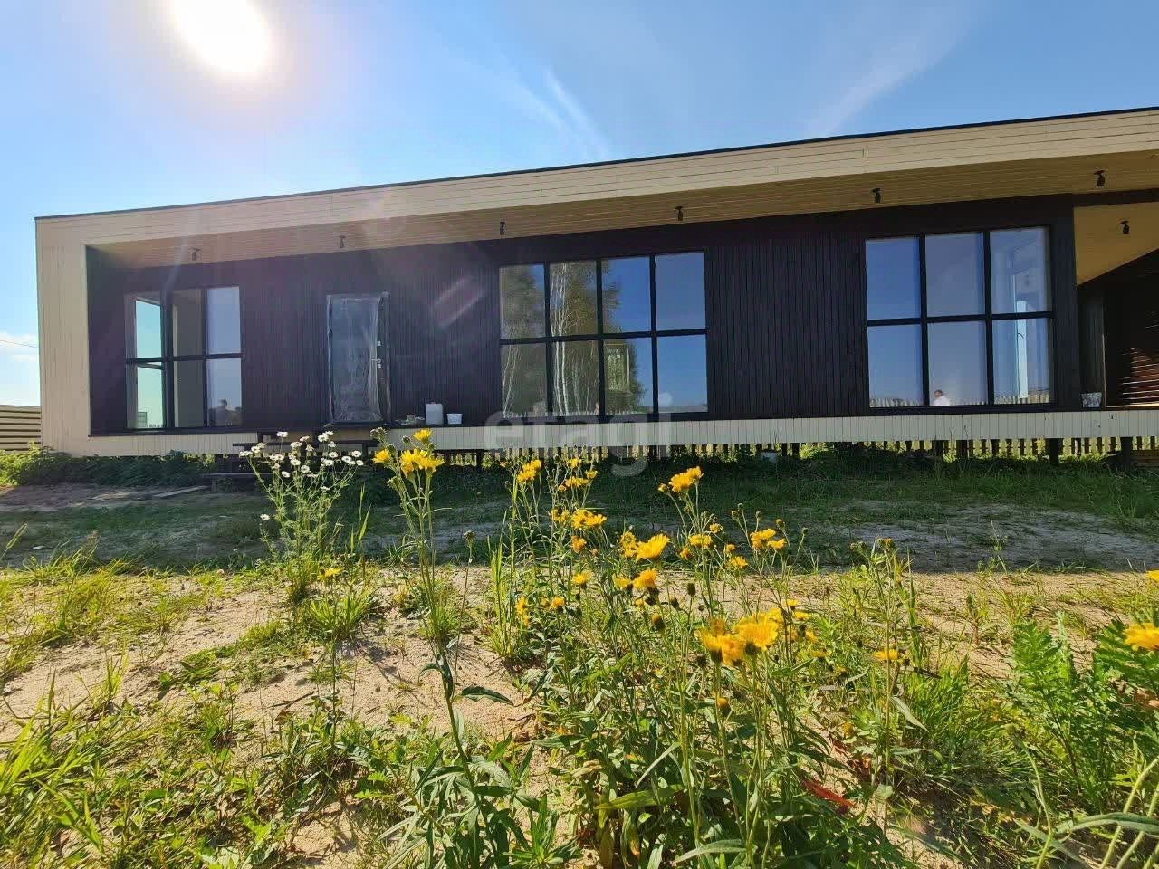 В продаже современный дом для круглогодичного проживания с панорамным окнами. Дом каркасный, построен по энергосберегающей технологии. Фундамент винтовой, глубина 2.5м. Остекление: поворотно-откидные окна в каждой комнате и сплошное остекление двойным энергоэффективным стеклопакетом 40 мм. Ветро-влагозащита Grandlain. Натяжные белые матовые потолки. Черновой пол ЦСП плита 16 мм. Ламинат. Полный электропакет: щиток, электропроводка в кабель каналах, розетки, выключатели, точечные светильники. Устройство внутренних коммуникаций: трубопроводы - канализация, вода. Внутренние стены: предчистовая подготовка - гипсокартон 12 мм. Входная дверь с терморазрывом. Входное крыльцо. Гарантия 5 лет на дом и несущие конструкции! Звоните! Почему нужно работать с Федеральной компанией ''Этажи''?