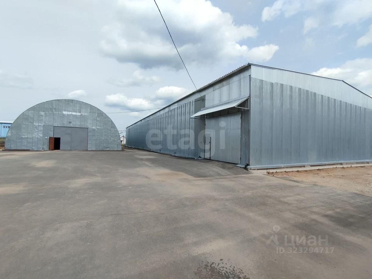 • Ангар каркасный капитальный: размер 60х24 м (1 440 м²), обшит оцинкованным профлистом, утеплен. Высота до фермы — 6,5 м, до крыши — 8 м. Пол асфальт.