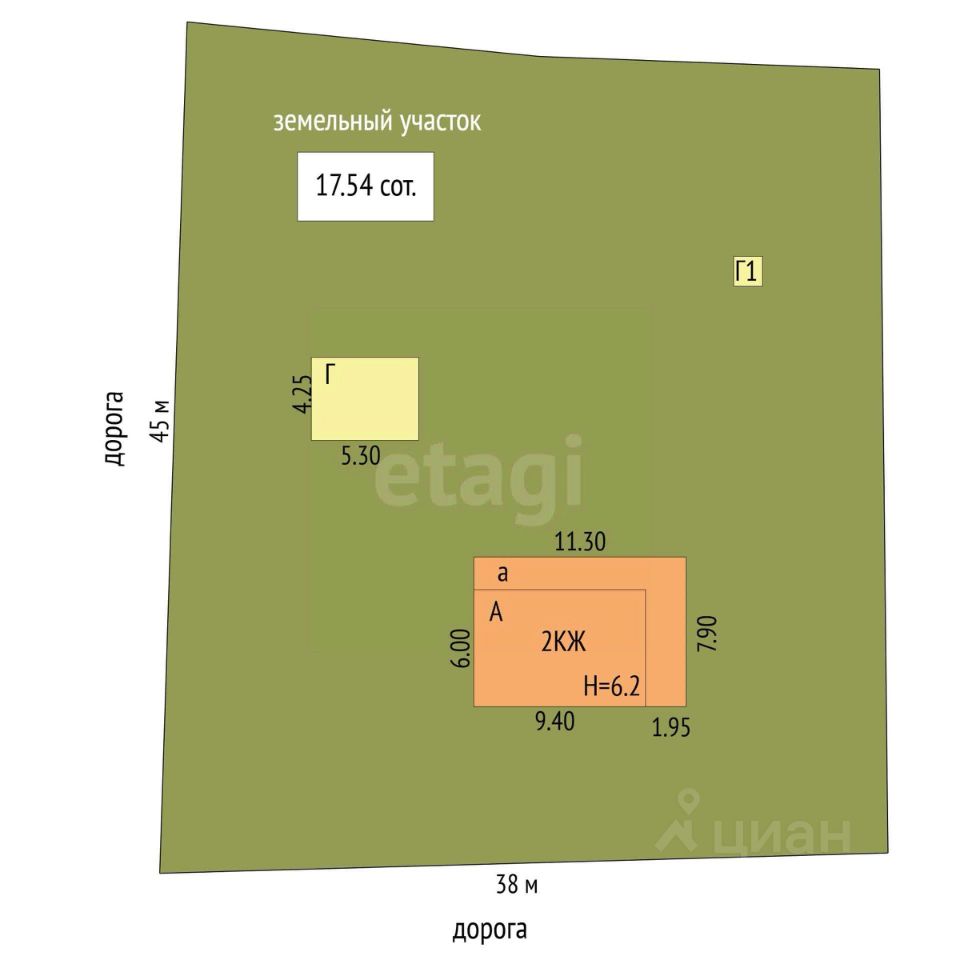 Участок 17,54 соток размеры 45*38 м ЛПХ