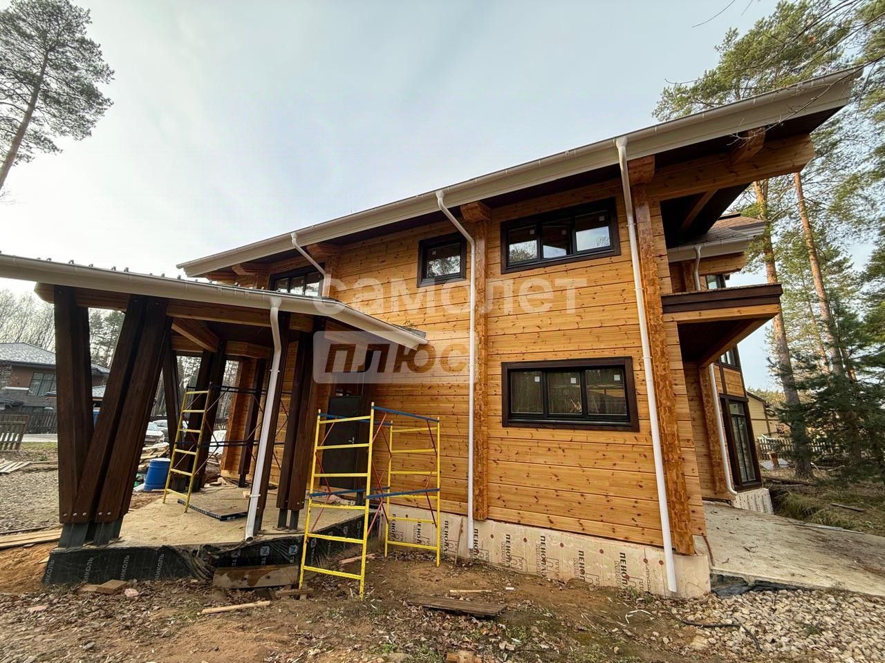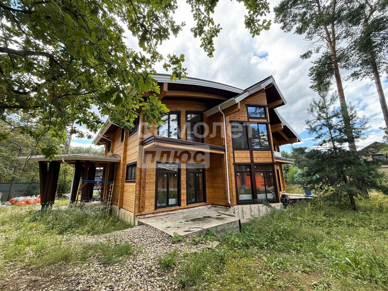 Дом из клееного бруса 534 м² Брус 210 на 410 • Архитектура с ''вторым светом'', создающим ощущение воздуха и свободы. • Простор для реализации любой дизайнерской концепции: внутренняя отделка не завершена, чтобы вы создали интерьер под себя. • Все центральные коммуникации заведены в дом: газ, электричество, канализация, вода.