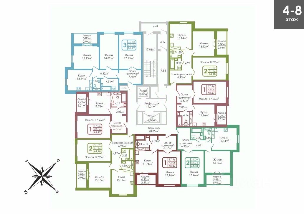 Общая площадь45,27 м2