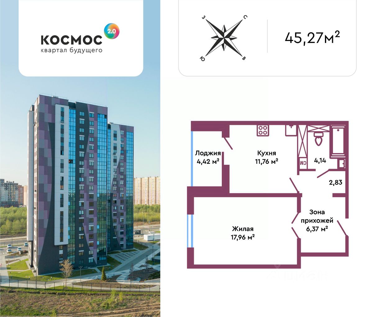 Общая площадь45,27 м2