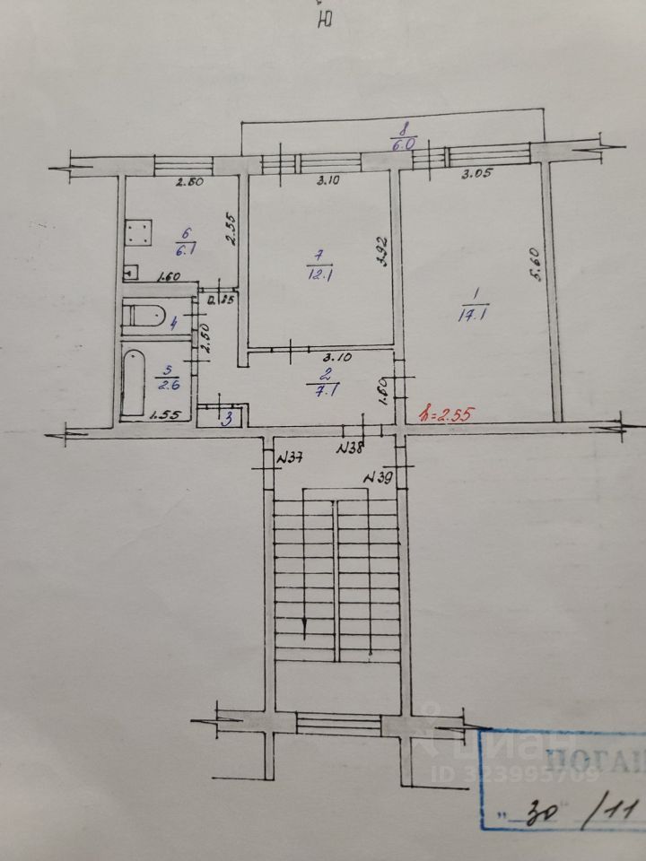 Квартира общей площадью 46.8 м2, комнаты все изолированные , окна выходят на южную сторону , в сторону реки Ока.