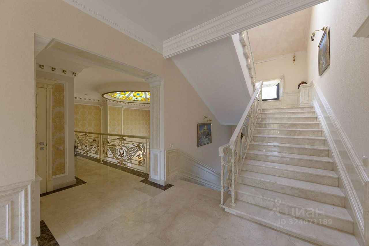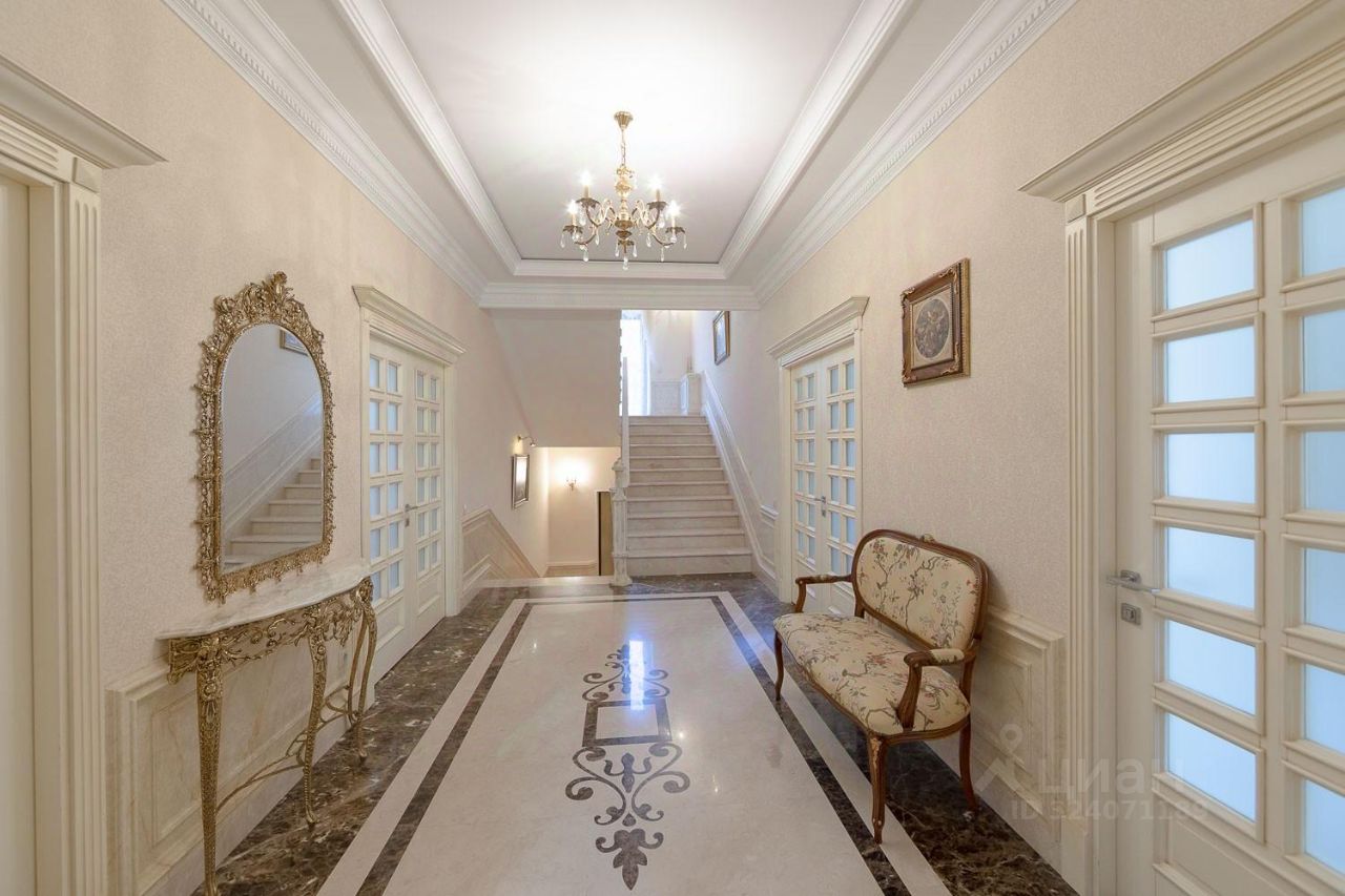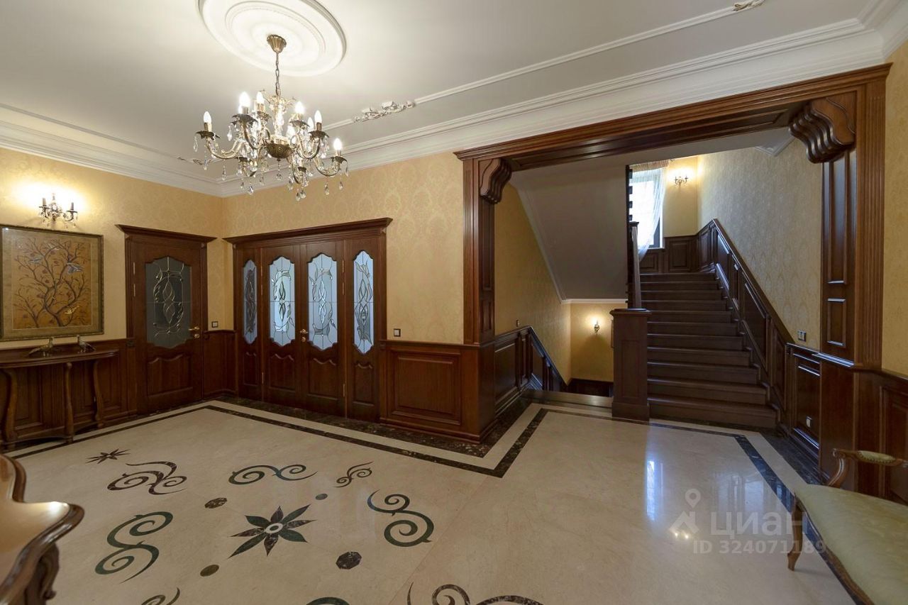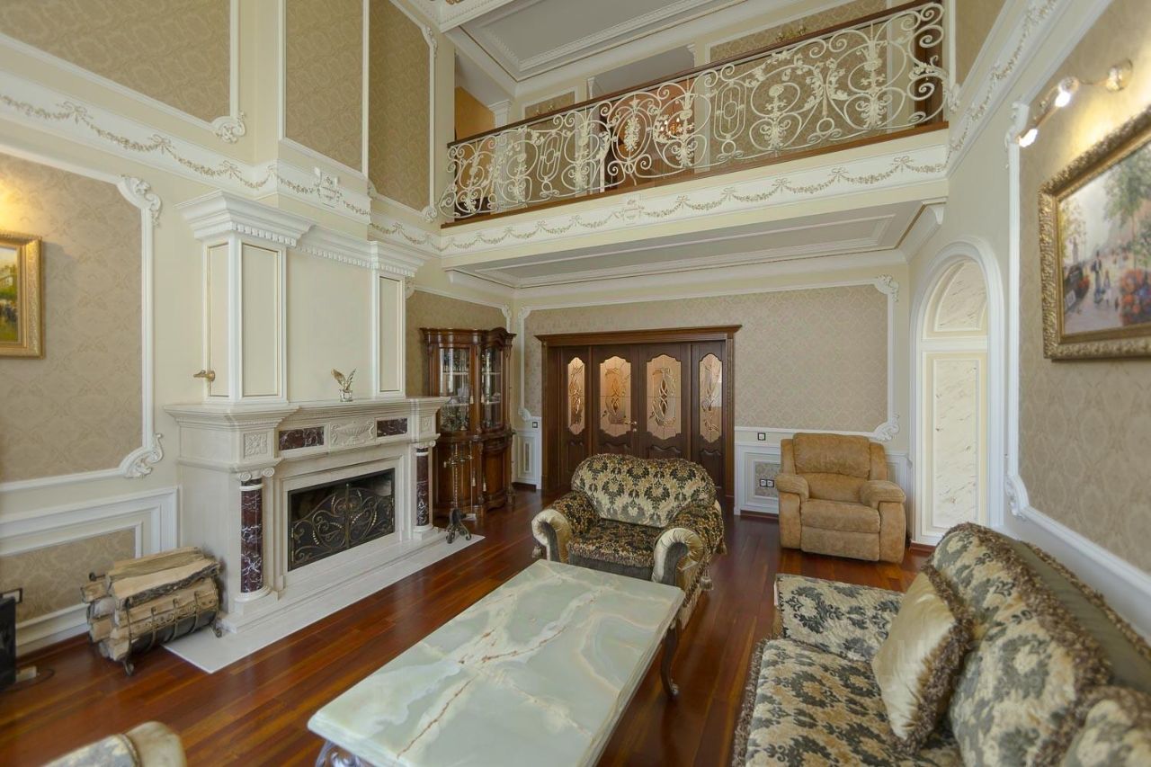 Отделка: все здания выдержаны в классическом стиле и отделаны натуральными материалами - итальянским мрамором и массивом дуба. Особняк построен из красного кирпича и облицован травертином.