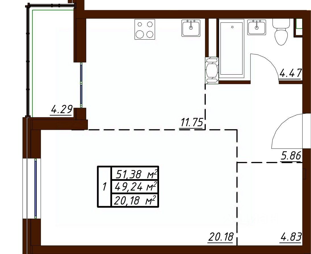 Общая площадь51,38 м2