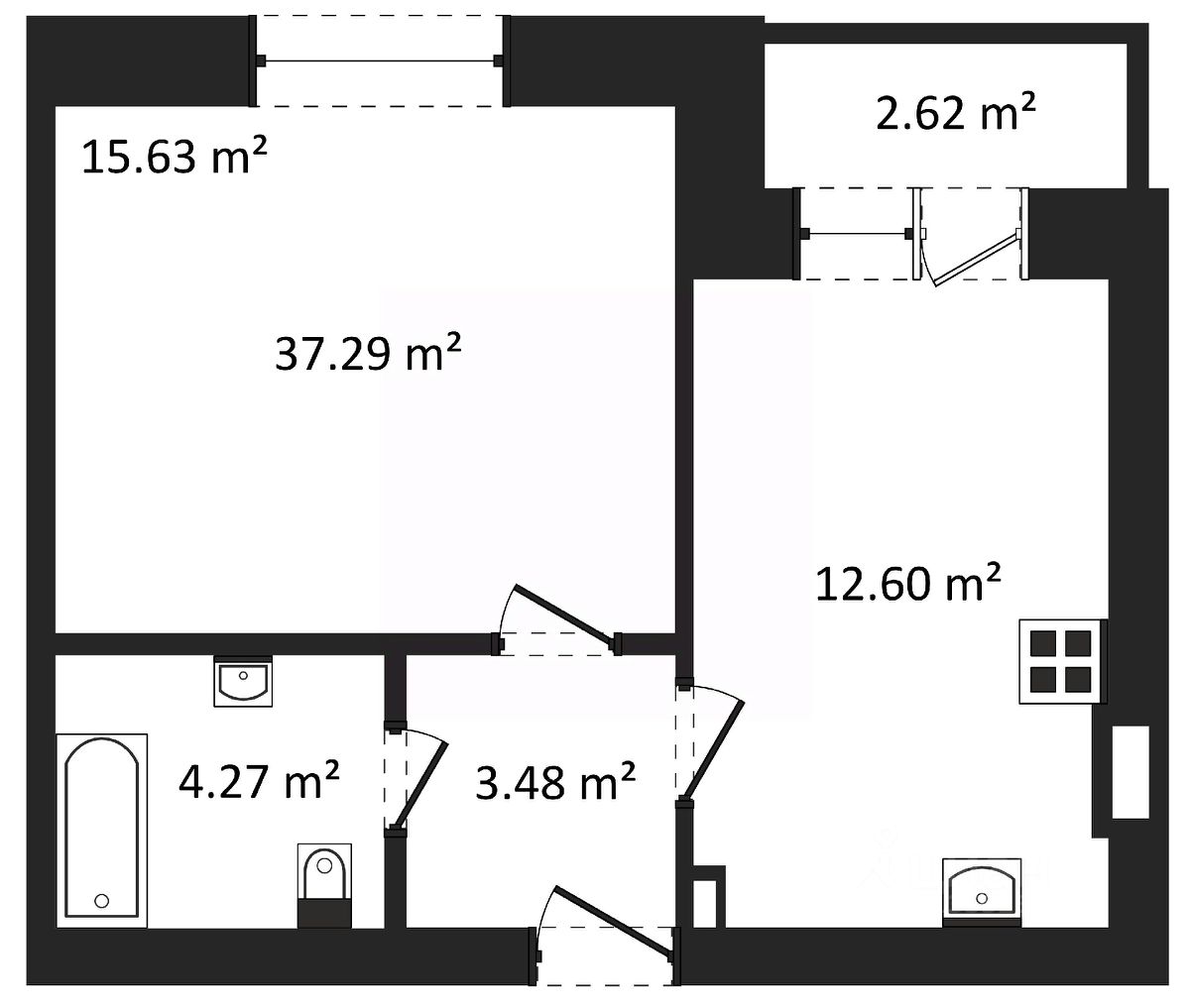 Общая площадь37,29 м2