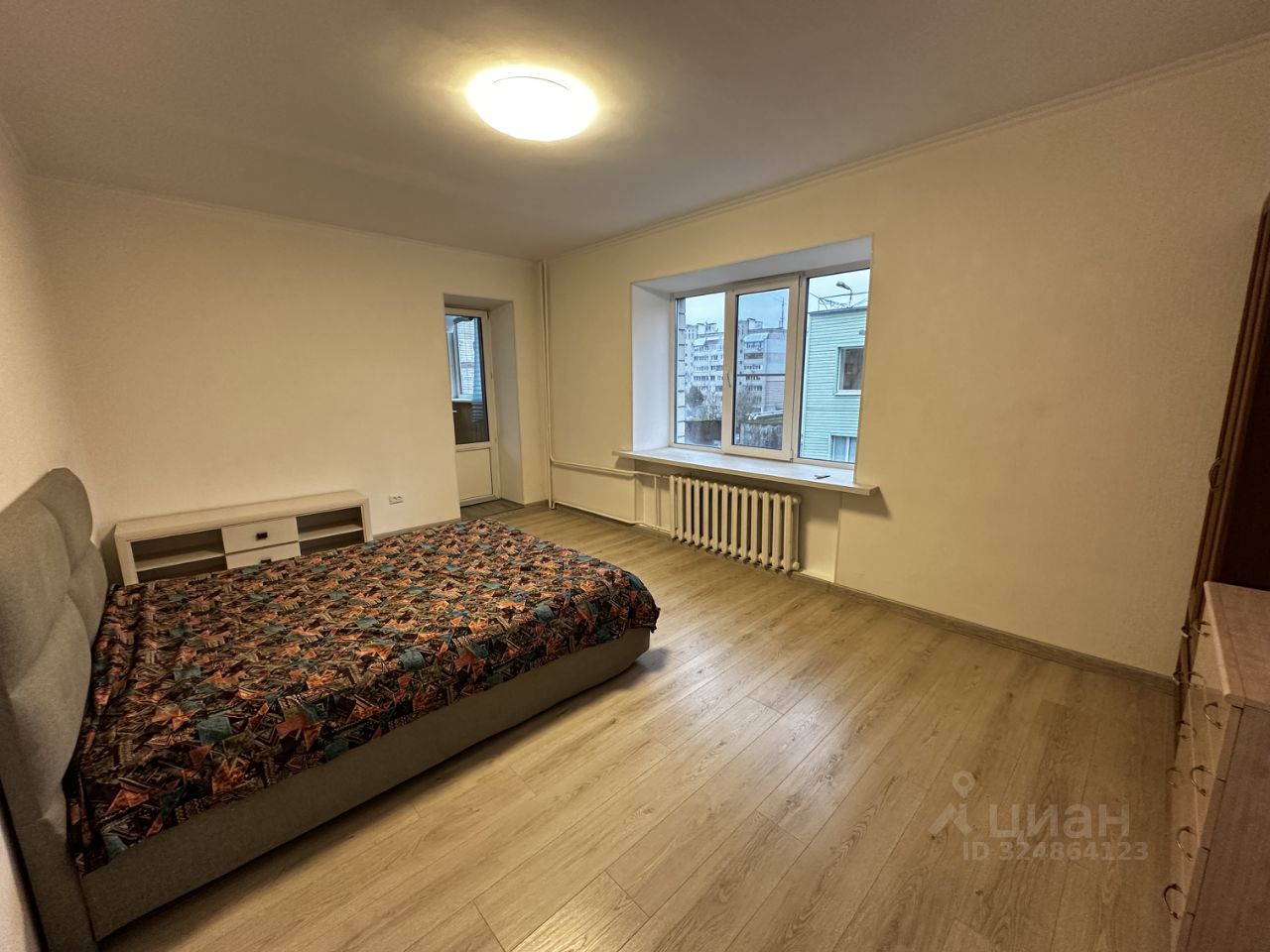 Общая площадь: 43,5 м² (жилая — 20,8 кв.м, кухня — 10,8 кв.м). Высота потолков: 2,8 м.