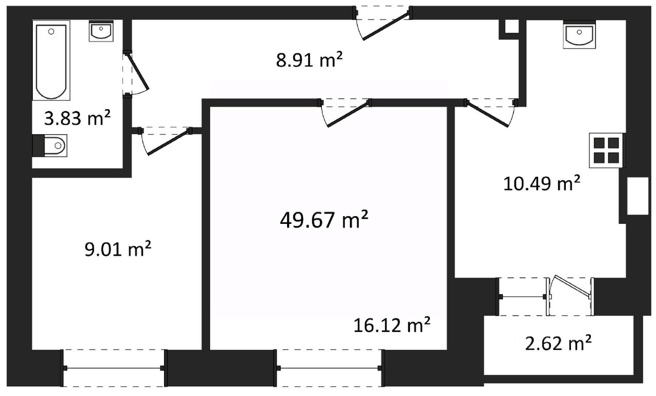 Общая площадь49,67 м2