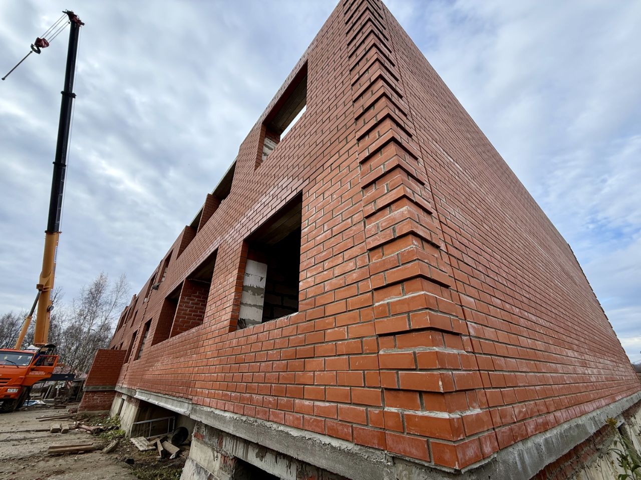 • 3-этажный дом из красного облицовочного кирпича и газобетонного блока.