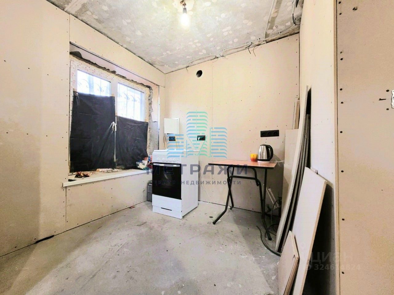 Квартира требует ремонта, частично выполнены следующие работы: часть стен зашита гипсокартоном, выполнена чистовая стяжка пола, разведена электрика и сантехника, заменены все окна, установлена надежная входная дверь.