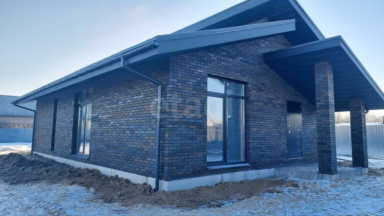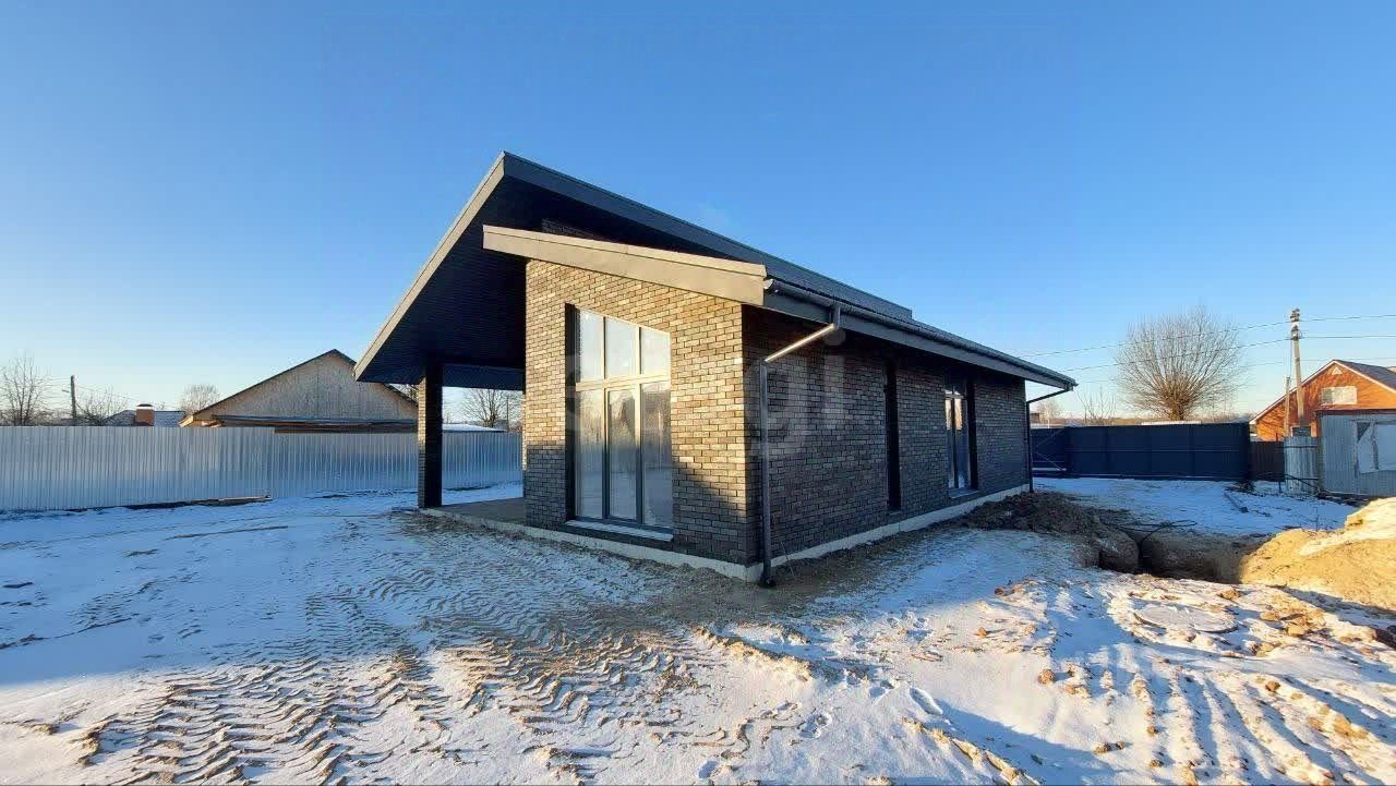 В состав помещений входят прихожая, котельная, объединенная гостиная-столовая, три изолированные спальни и два санузла, а также просторная веранда для отдыха. Дом построен из качественных материалов: стены из газоблока толщиной 300 мм с утеплением и облицовкой кирпичом, кровля из мягкой черепицы.