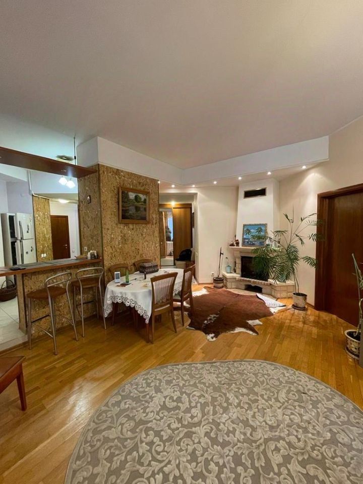 Площадь квартиры 125,6м2. Этаж 2. Три отдельные спальни + кухня-гостиная. Дровяной камин в зале. 3 лоджии ( не разделены )