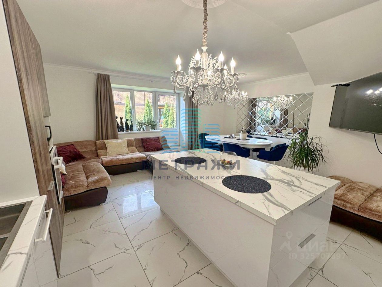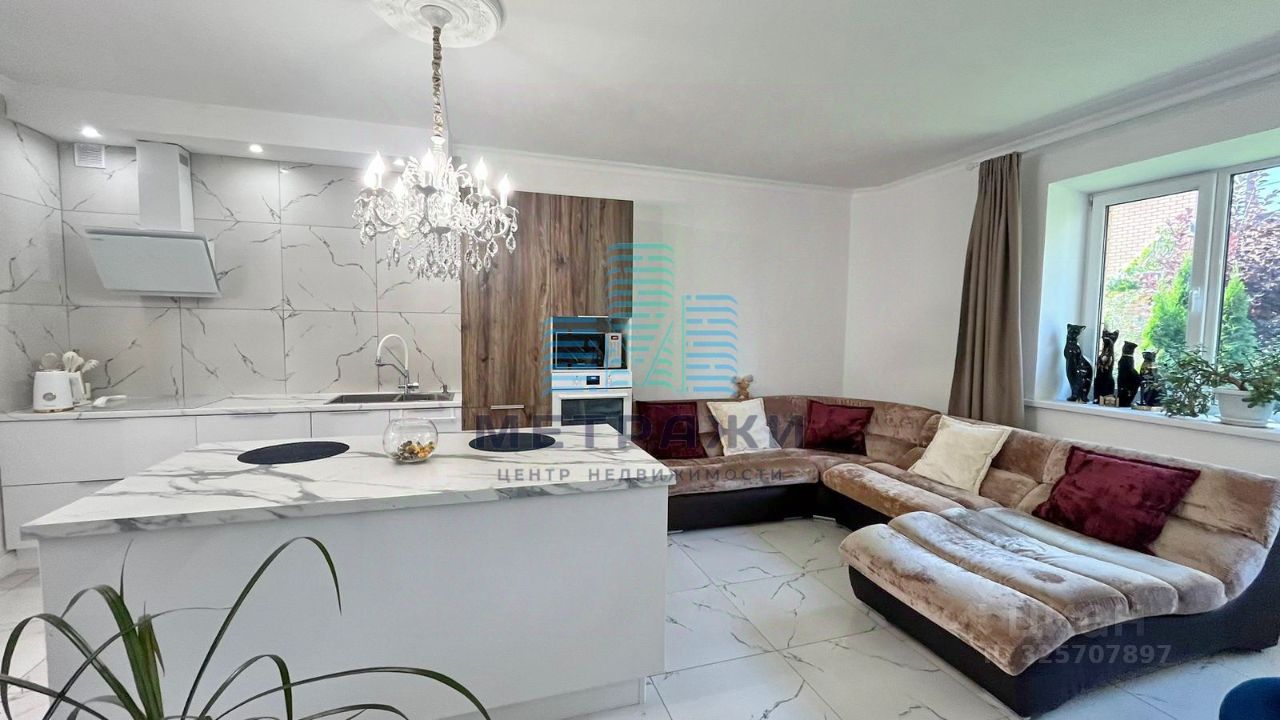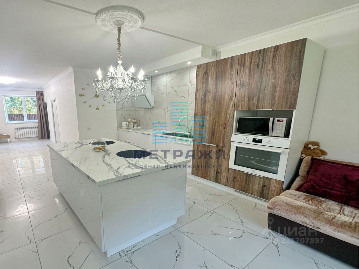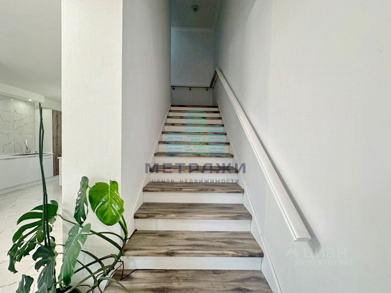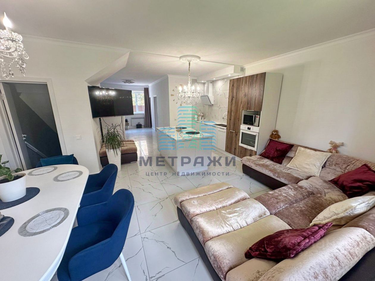О квартире: Секция имеет 3 этажа жилых и цокольный этаж. На всех уровнях выполнен качественный, дорогой ремонт, делали все не для продажи, а для себя. Цокольный этаж: есть канализация, выполнен хороший ремонт, можно переоборудовать в спортзал, игровую, организовать прачечную. Стоит осушитель воздуха, стабилизаторы напряжения на всю технику в доме. Первый этаж: огромная кухня-гостиная 32,2 кв. м , гардеробная, гостевой санузел, из кухни выход на свой участок 2 сотки, где можно организовать зону отдыха, навес. Выполнен дизайнерский ремонт с использованием дорогих материалов: теплые водяные полы, кроме гардеробной, обои под покраску, керамогранит на полу, оборудована качественной и дорогой мебелью и техникой. Дорогой кухонный гарнитур, фильтр для питьевой воды. Второй этаж: просторная спальня 22,4 кв. м., гостиная/зимний сад, санузел с душевой. Электрические теплые полы. Третий этаж: две спальни 22,8 и 21 кв. м., санузел с ванной.