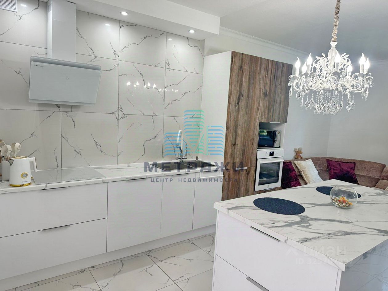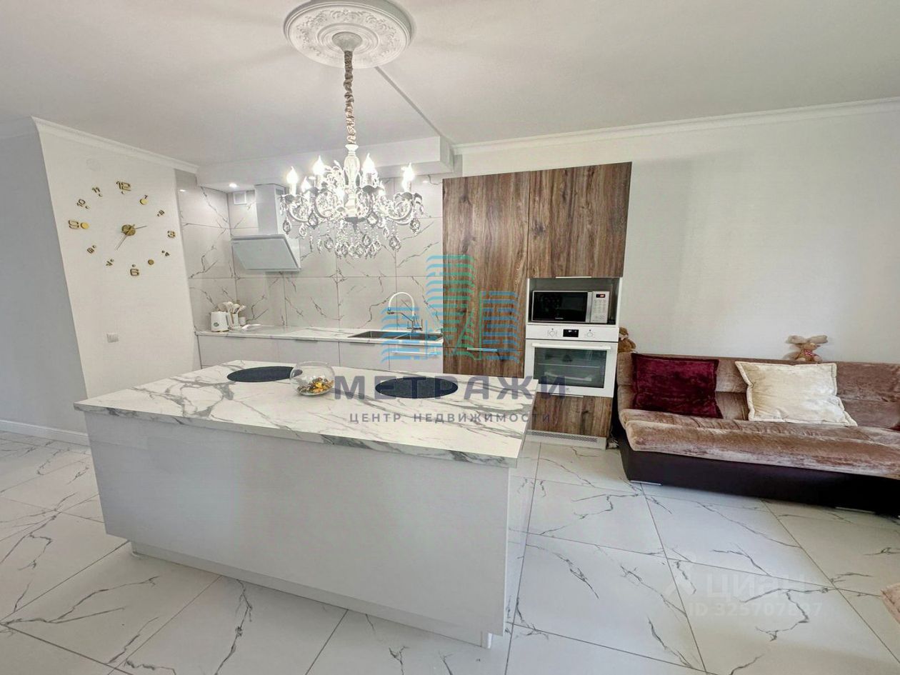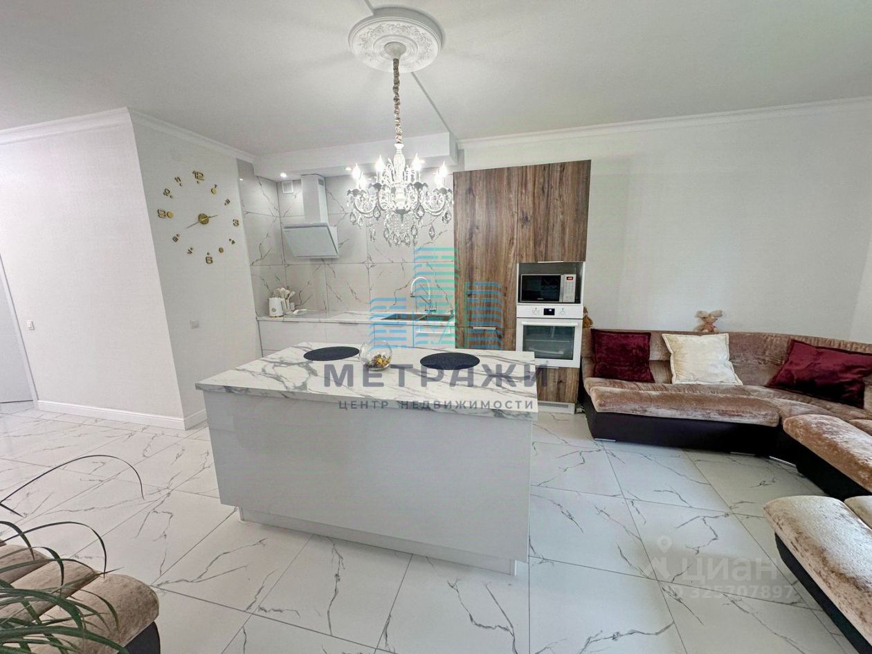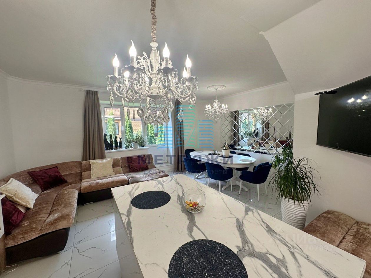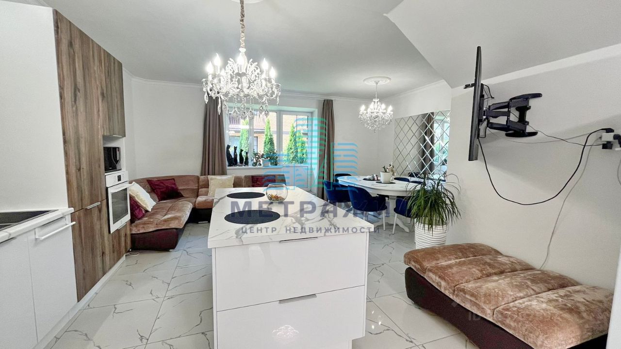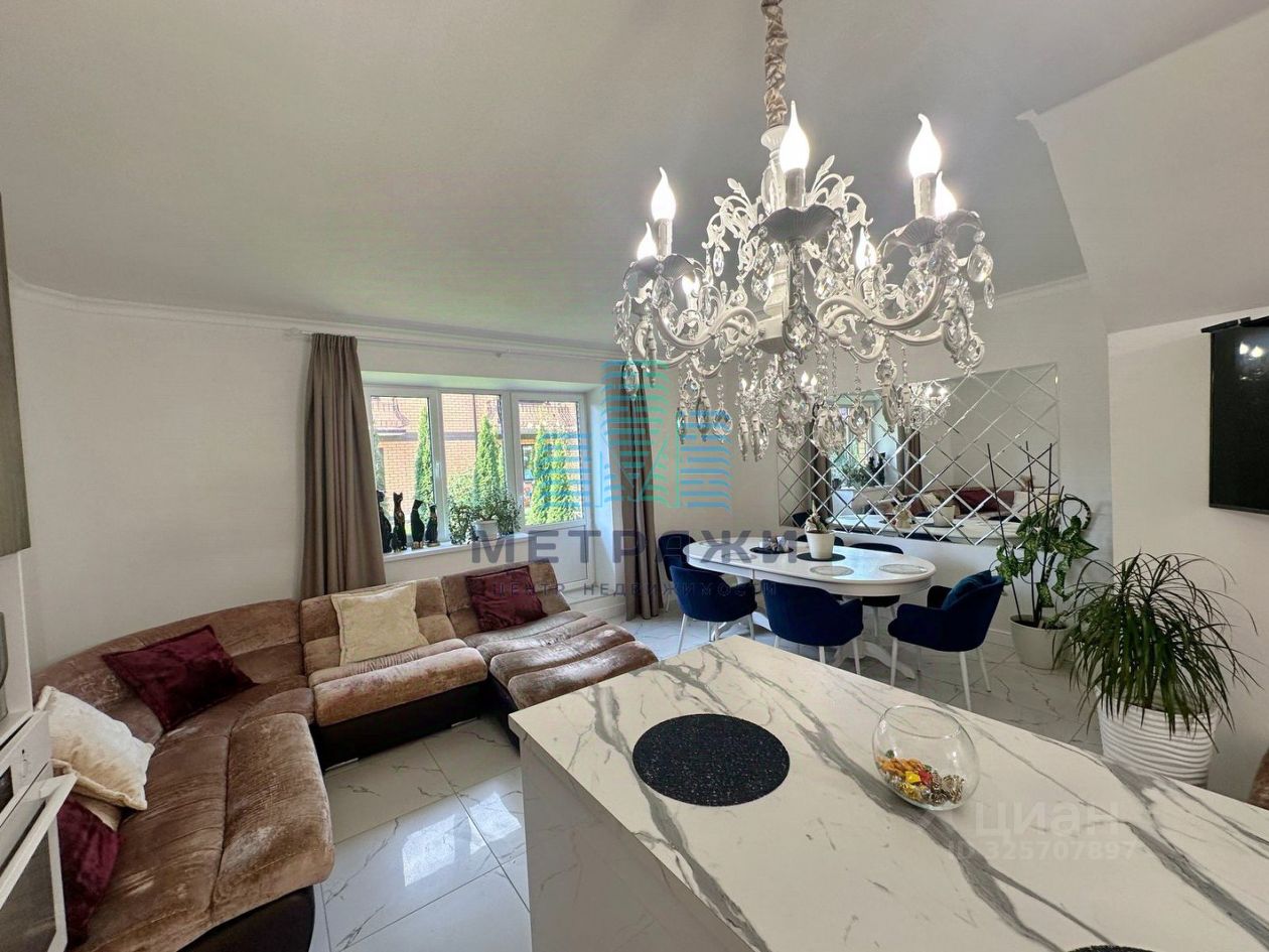 О квартире: Секция имеет 3 этажа жилых и цокольный этаж. На всех уровнях выполнен качественный, дорогой ремонт, делали все не для продажи, а для себя. Цокольный этаж: есть канализация, выполнен хороший ремонт, можно переоборудовать в спортзал, игровую, организовать прачечную. Стоит осушитель воздуха, стабилизаторы напряжения на всю технику в доме. Первый этаж: огромная кухня-гостиная 32,2 кв. м , гардеробная, гостевой санузел, из кухни выход на свой участок 2 сотки, где можно организовать зону отдыха, навес. Выполнен дизайнерский ремонт с использованием дорогих материалов: теплые водяные полы, кроме гардеробной, обои под покраску, керамогранит на полу, оборудована качественной и дорогой мебелью и техникой. Дорогой кухонный гарнитур, фильтр для питьевой воды. Второй этаж: просторная спальня 22,4 кв. м., гостиная/зимний сад, санузел с душевой. Электрические теплые полы. Третий этаж: две спальни 22,8 и 21 кв. м., санузел с ванной.