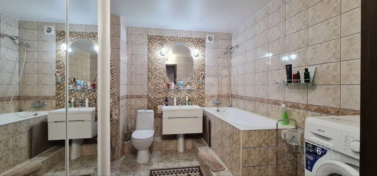 Планировка на две стороны гарантирует хорошую инсоляцию, а два совмещенных санузла повышают удобство проживания.