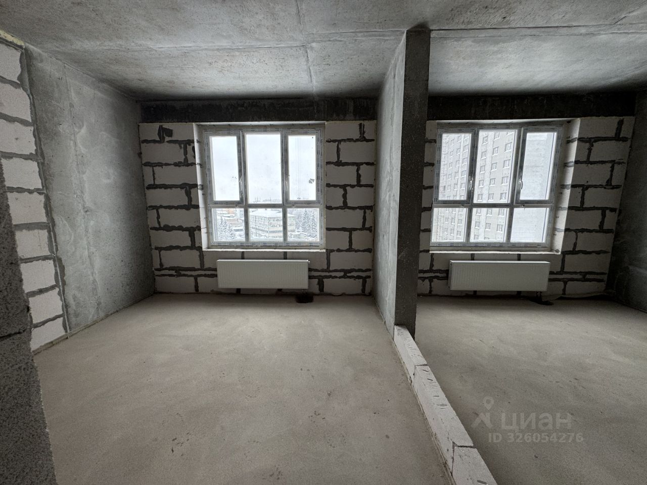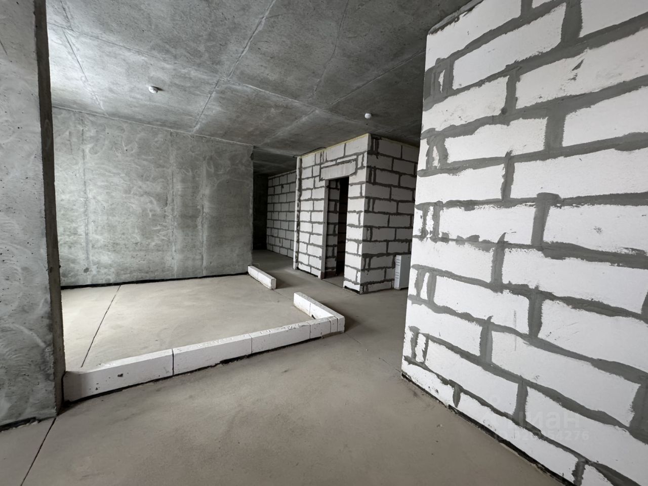 Сделана стяжка , большая кухня гостиная.