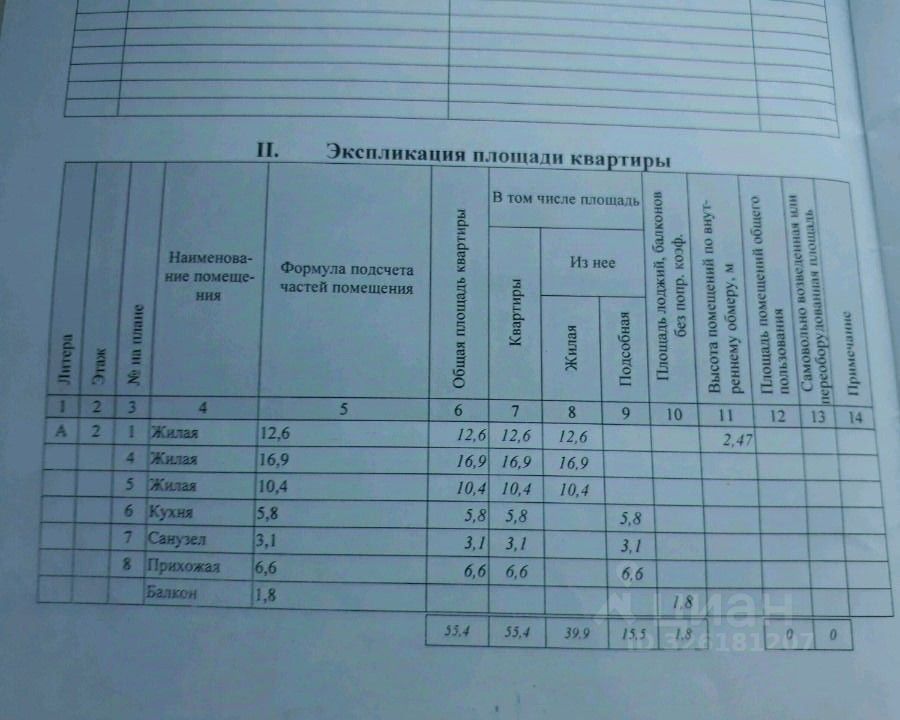 Общая площадь: 55,4 кв. м. кв.