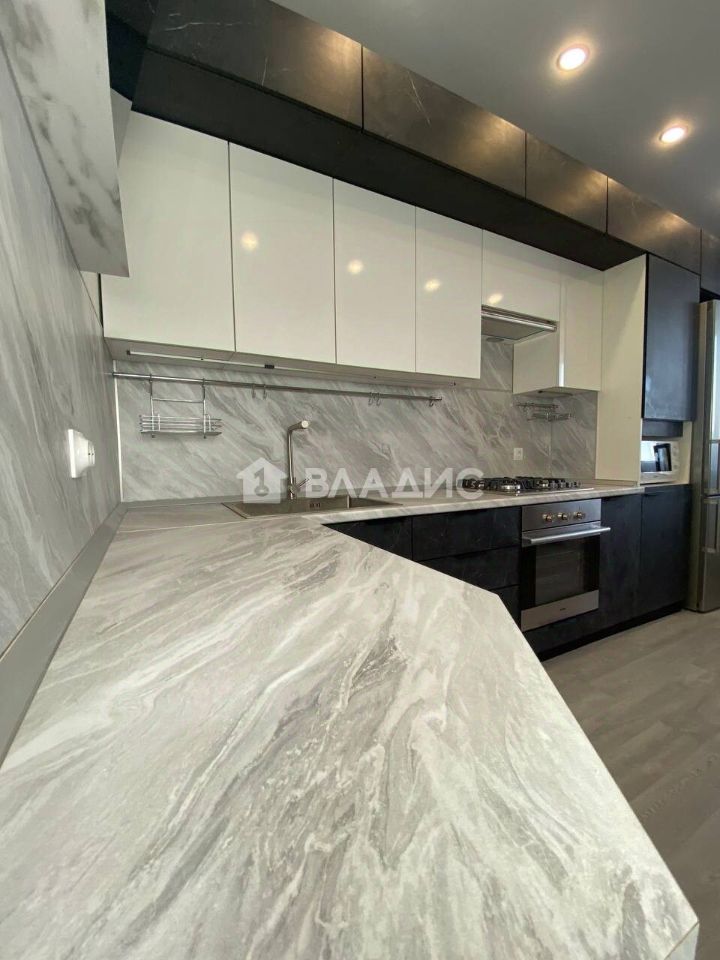 Общая площадь квартиры составляет 44,9 кв. м, жилая — 16,3 кв. м, площадь кухни — 11,8 кв. м. В ванной комнате установлены электрические тёплые полы. Есть гардеробная.