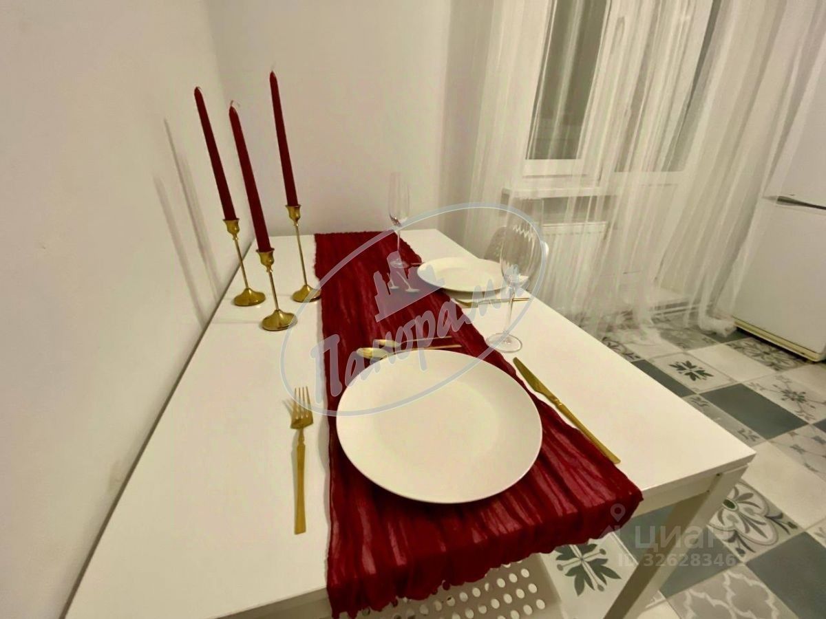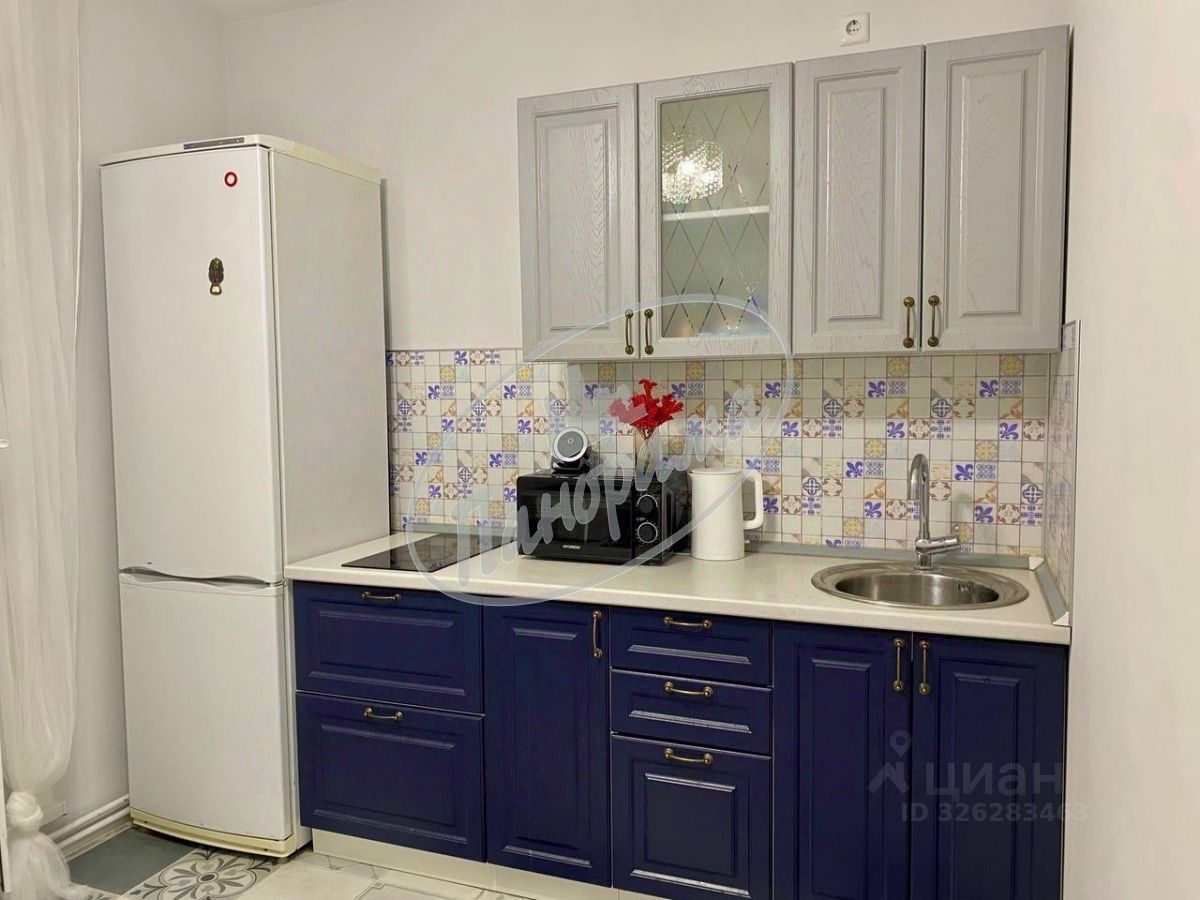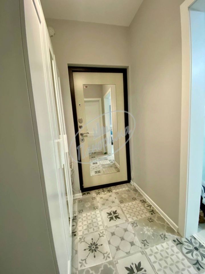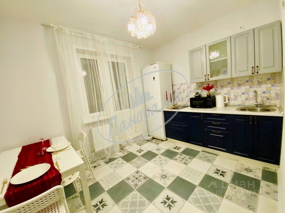 Расположена на 6 этаже 10 этажного дома. Квартира меблирована, есть кухонный гарнитур, электрическая плита, варочная панель, холодильник, стол, стулья, в ванной -стиральная машина, в комнате -двухспальная кровать, большой шкаф-купе. Шкаф в коридоре.