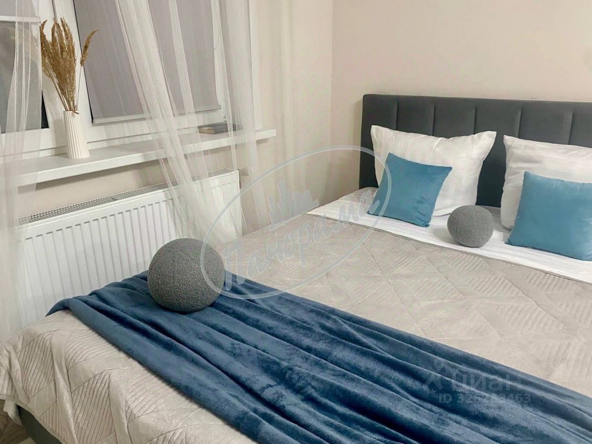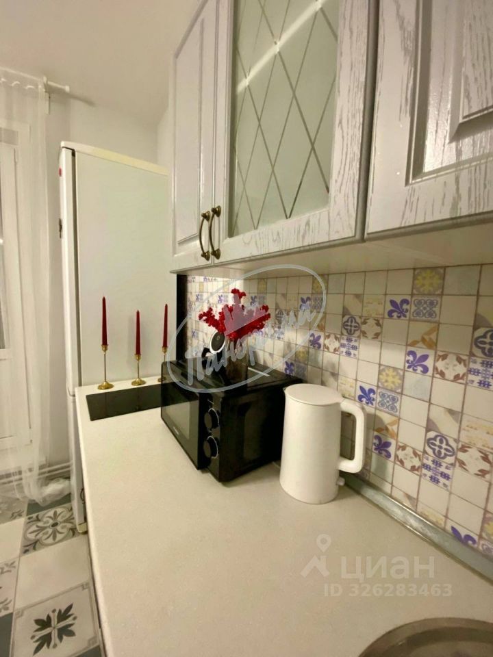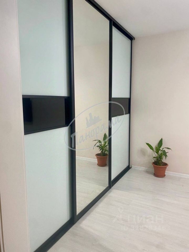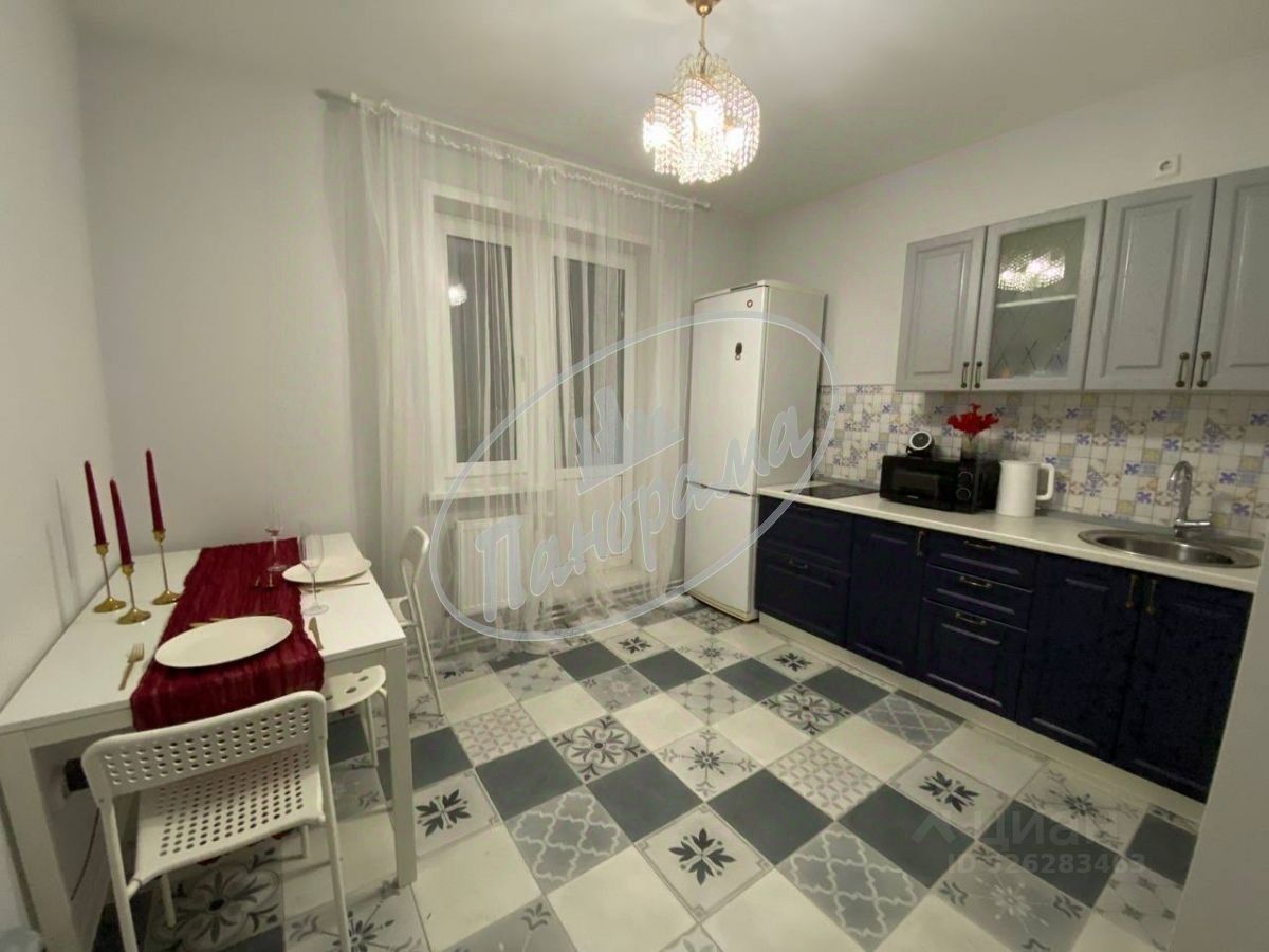 Расположена на 6 этаже 10 этажного дома. Квартира меблирована, есть кухонный гарнитур, электрическая плита, варочная панель, холодильник, стол, стулья, в ванной -стиральная машина, в комнате -двухспальная кровать, большой шкаф-купе. Шкаф в коридоре.