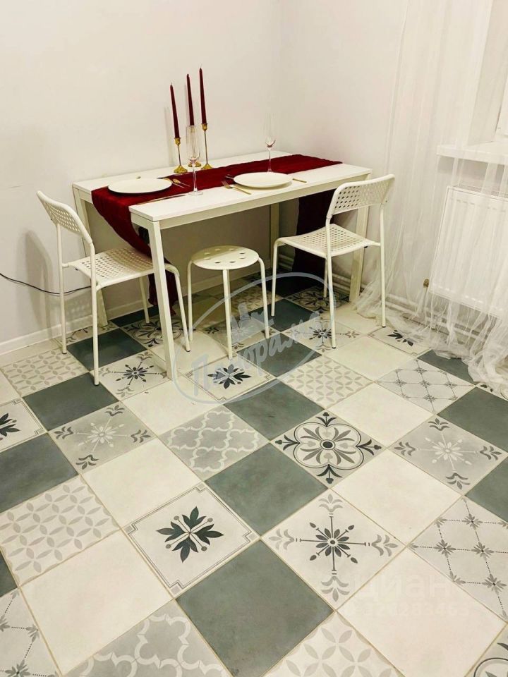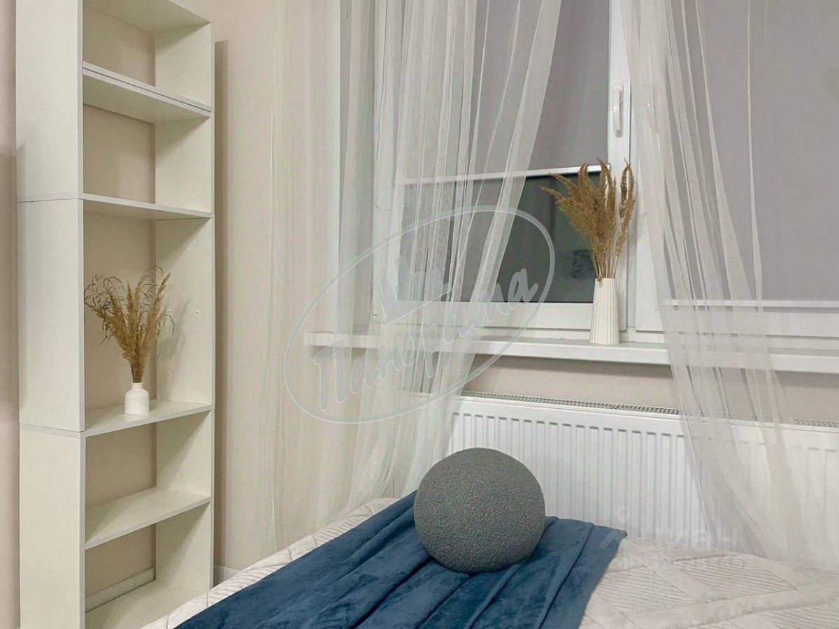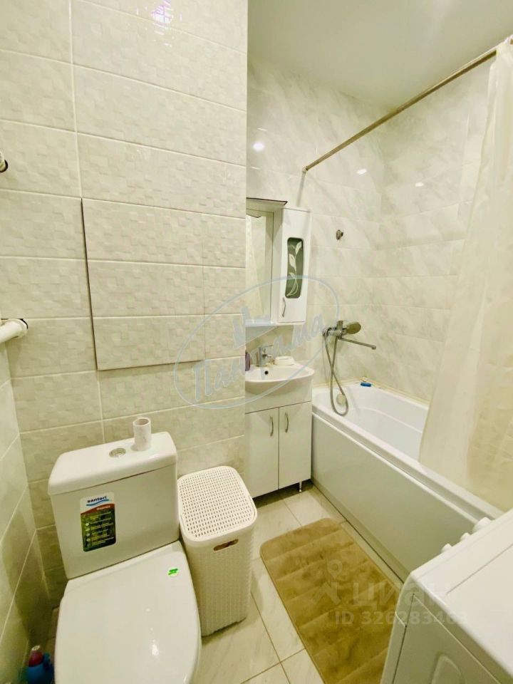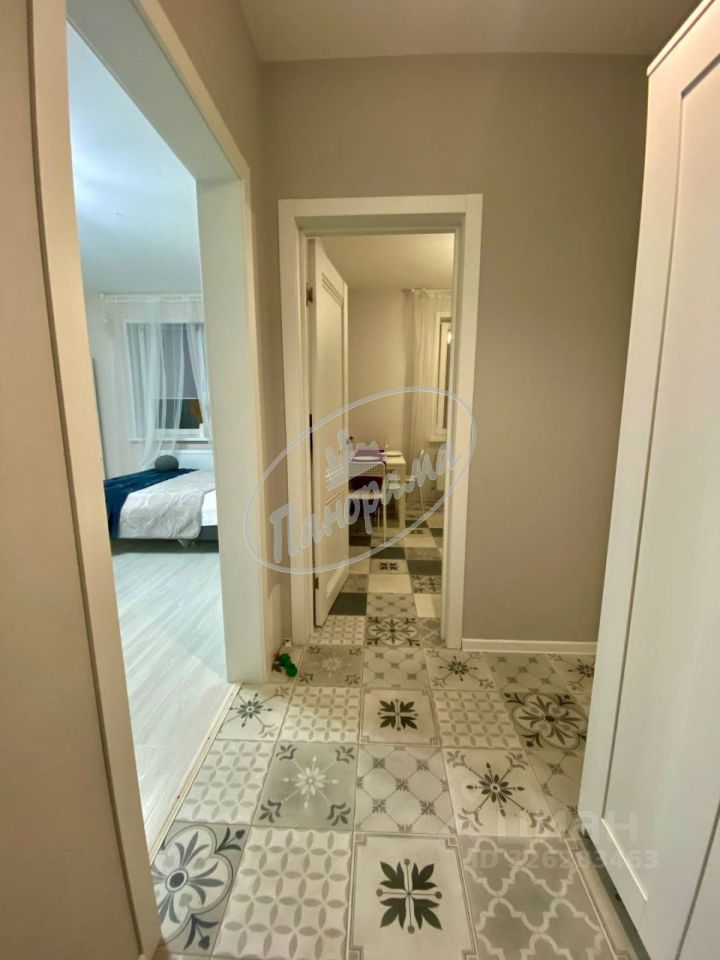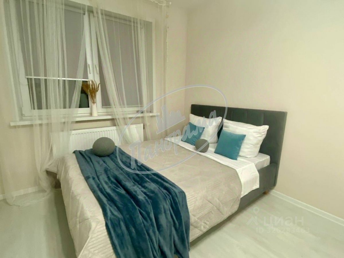Расположена на 6 этаже 10 этажного дома. Квартира меблирована, есть кухонный гарнитур, электрическая плита, варочная панель, холодильник, стол, стулья, в ванной -стиральная машина, в комнате -двухспальная кровать, большой шкаф-купе. Шкаф в коридоре.