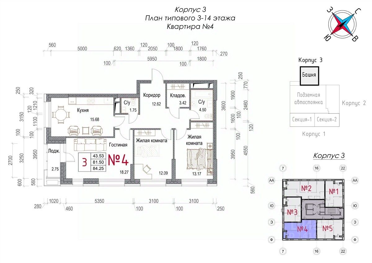 Общая площадь84,5 м2