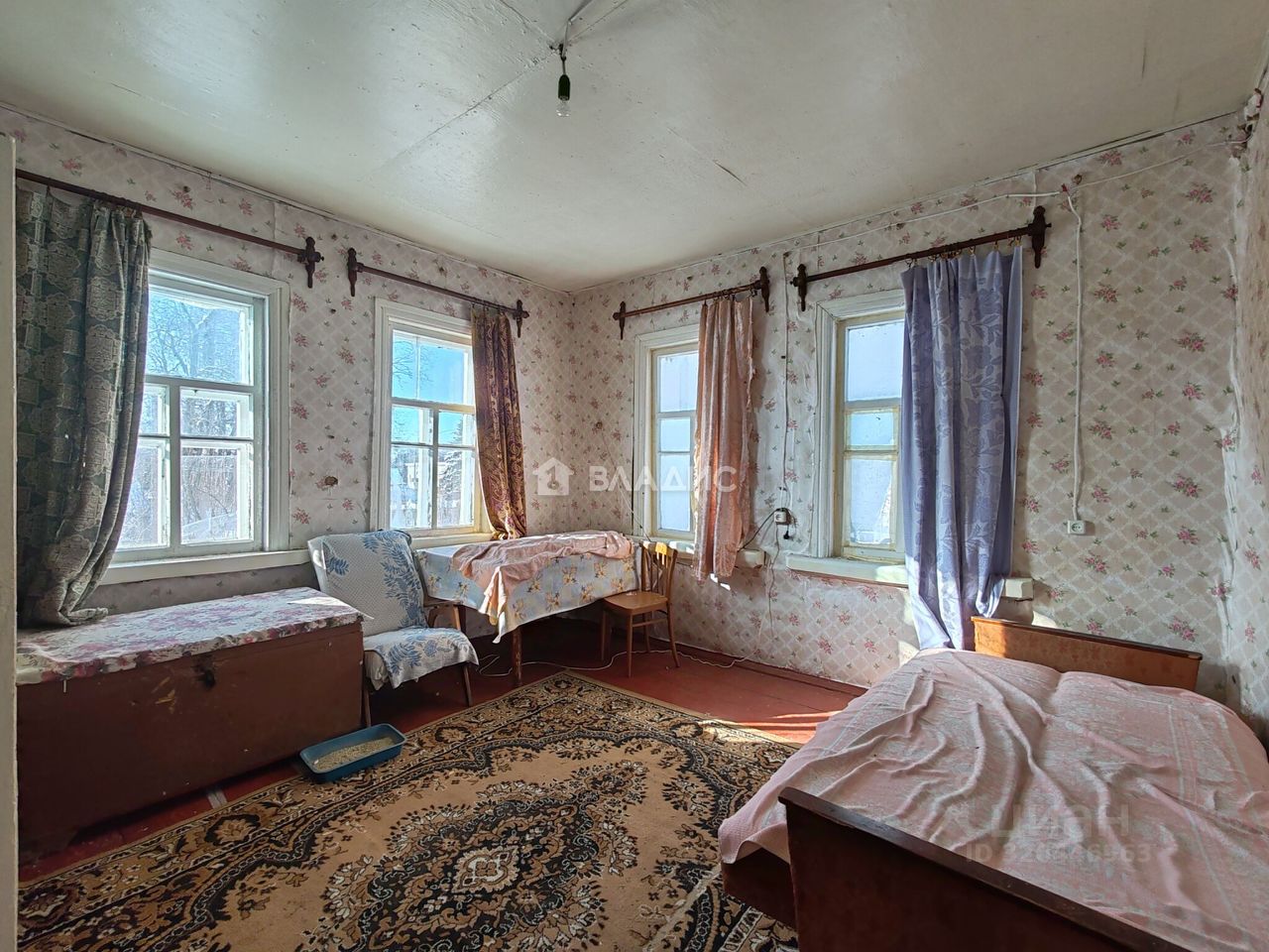 Дом построен в 1961 году из бревна, что придаёт ему особый шарм и теплоту. Общая площадь дома составляет 64 кв. м, из которых 52 кв. м — жилая площадь. Три комнаты с высокими потолками (2,7 м) создают ощущение простора и свободы.